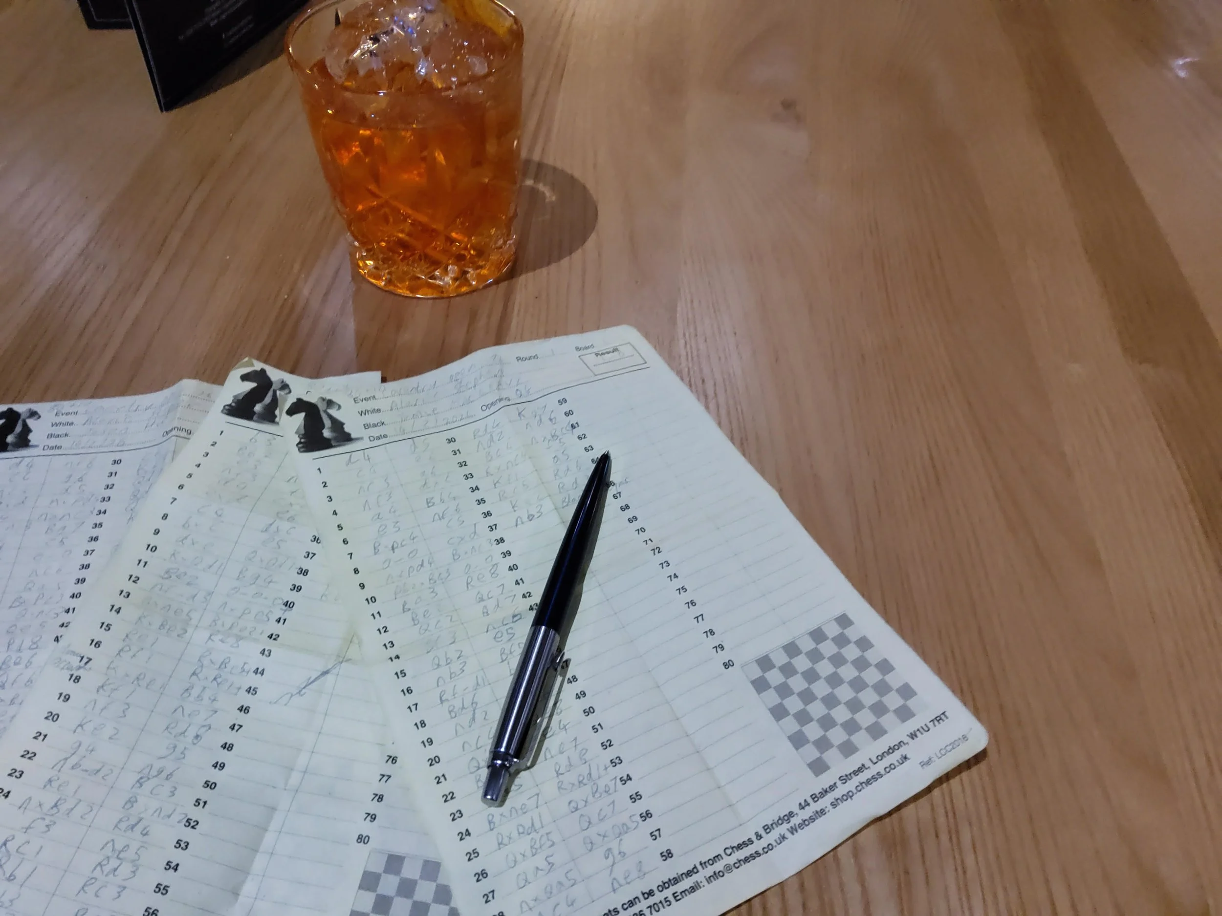 By the end of the day I was on 3/3, with three players Willem, Paul and Shrisha on 2.5/3. I’d booked myself into a hotel near the station, ordered myself an Old Fashioned in the hotel bar, got out my tablet and started analysing my games. A shout out to Scott Oxtoby here, who helped me look through them and also helped me prep some opening theory on what my potential opponent, seed 2 Willem plays as white. If I had him in game 4 he would have white and he plays the rare 1.nc3, the Dunst opening. Scott and I spoke through some options with 1...c5 being a possibility and angling for a sicilian where white can no longer go for c4 for a Maróczy Bind, so Accelerated Dragons are on the table. However I decided instead to go for 1...d5 which has potential to transition into a Scandinavian after 2.e4, but having seen Willem’s game 2 I knew that 2.d4 was more likely, which plays like a Queen’s Pawn game where white can’t play the natural c4 anymore. I also prepped QGA lines in case I saw Willem in round 5 where I was likely to have white.